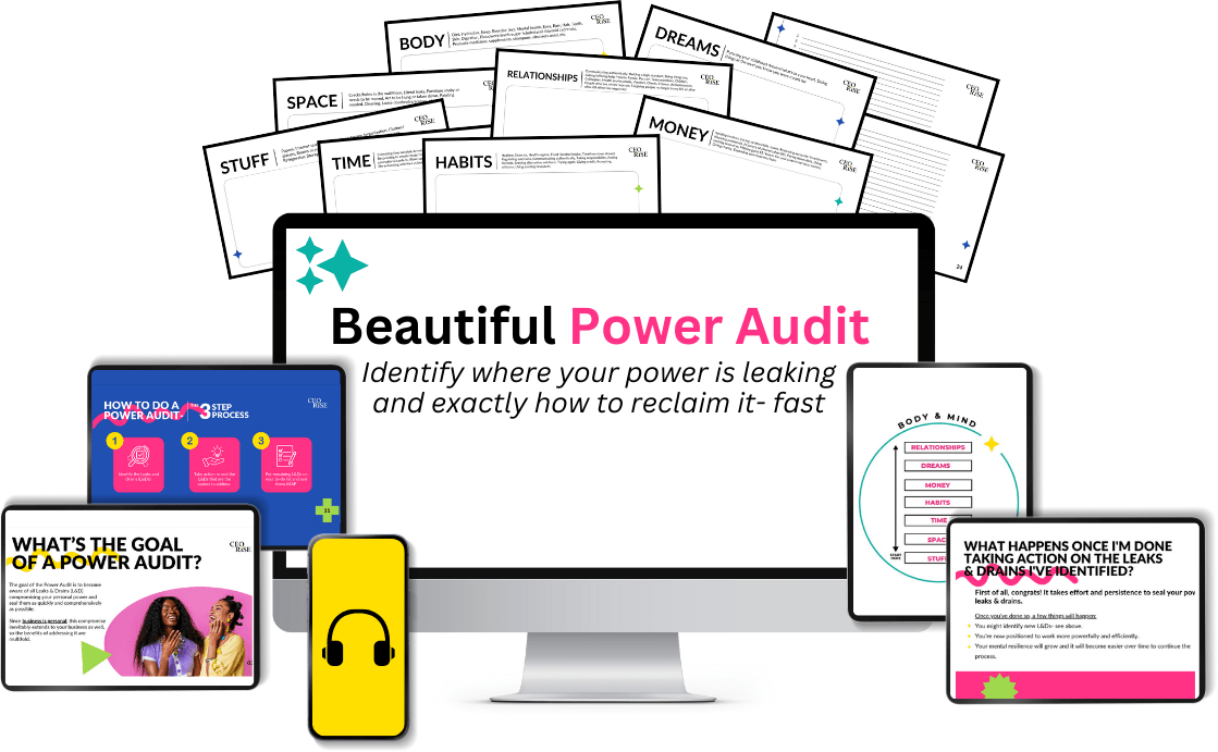 You'll do a thorough audit of your life and business and discover EXACTLY where your power is leaking/draining. Once you do, this comprehensive list will be your customized roadmap to decluttering your way back to power and freedom.
